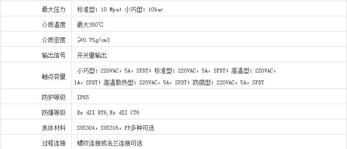 側(cè)裝浮球開關(guān)技術(shù)參數(shù):